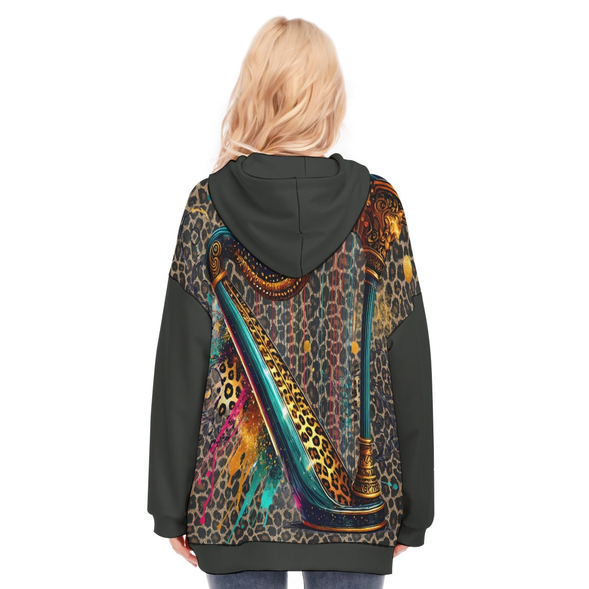 Long women's hoodie, zipper closure, classic style, long sleeves, with adjustable hood rope, can be worn daily
